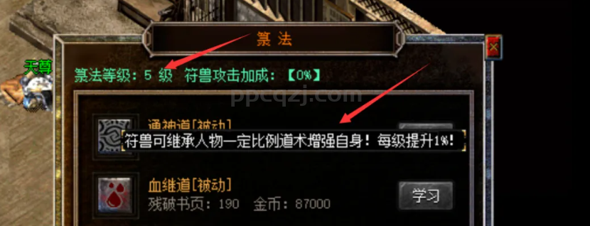 有些新人玩家比较晚进服,看到别人有狗,自己只有一个骷髅就比较疑惑,这个是怎么来的,这个是我们这个版本的一个技能进阶设置,升级召唤三巨头之一的【符召术】,每5级都会变化成一个新宝宝~