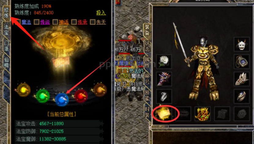 主要的仙力组成:修炼+(法宝、炁)+装备提供的仙力