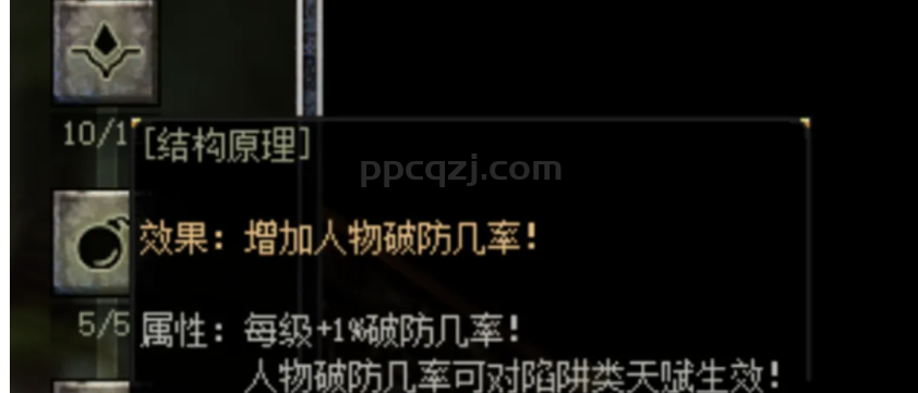 陷阱第一个天赋点的效果就是增加人物破防几率,每级+1%的破防几率,点满就是10%的破防几率,人物破防几率可对陷阱类的所有天赋生效哦~