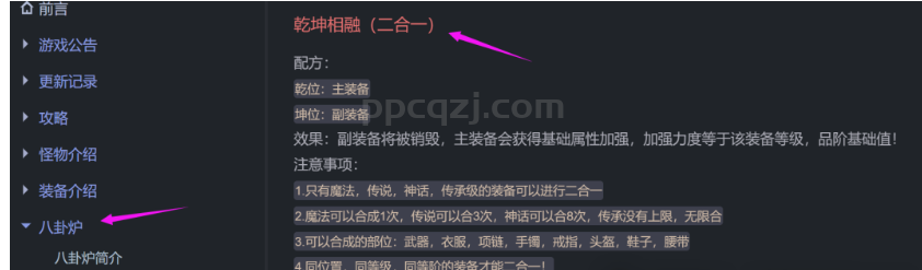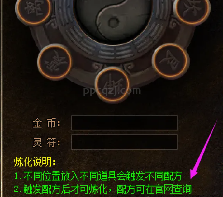 看到配方以后大家也会发出疑问,为什么放了没有显示炼化,那么只有一种可能就是你放错物品或者位置了,这个只要放对了就会触发配方,大家在看配方的时候也要注意配方下面写的注意事项啊!!!