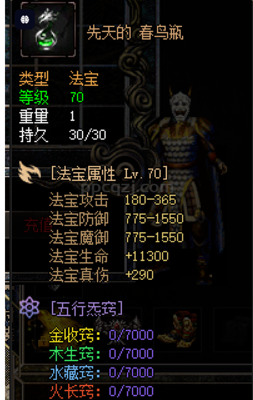 大家可以在这个界面点开法宝这一栏,看到法宝的各种详细属性。