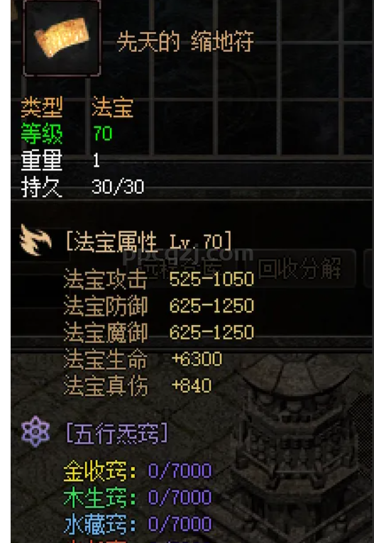 空间属性法宝,附带特效【缩地成寸】,每30秒积累1次,大地图右键点击即可传送!