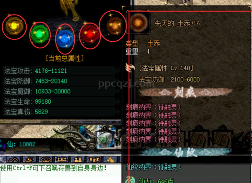 法宝这里的五个位置是可以佩戴5个炁的