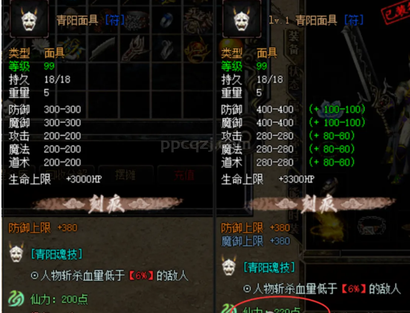 青阳面具的升级是没有上限的,每一次的升级会提升基础属性和仙力;