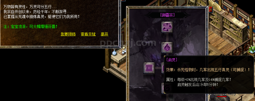 御靈宗这个门派也是相对比较纯粹的宝宝流,不喜欢玩宝宝的基本可以绕过了,这个是有宝宝专属的技能面板的,抓宠搭配技能可以让宝宝流玩家更上一层楼!