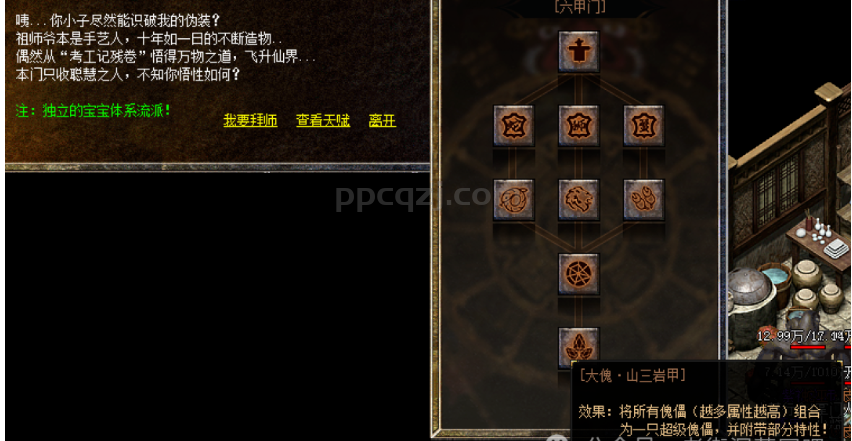 六甲门是独立的宝宝体系流派,因为傀儡不同所以有可以组合多种不同的战斗方式,而且组成超级合体大傀儡的时候也是自动组合!