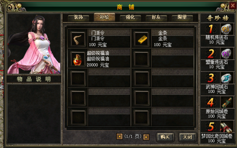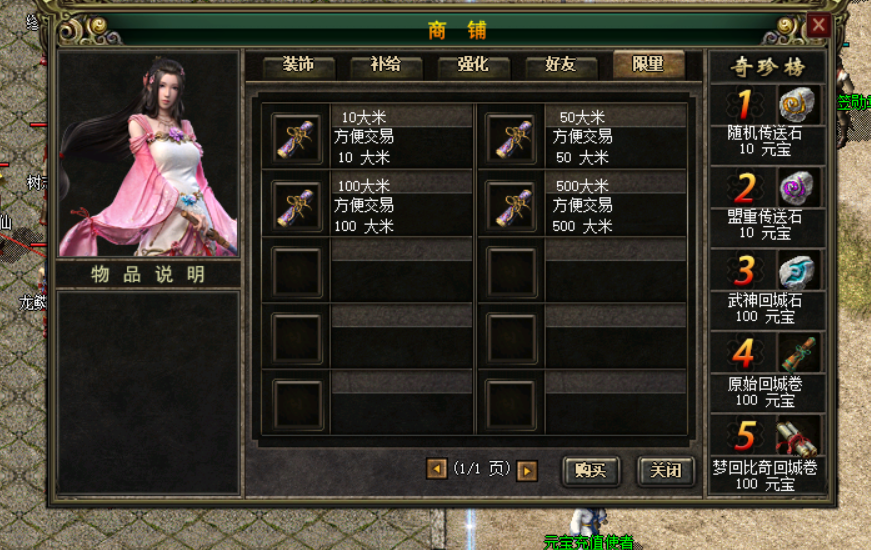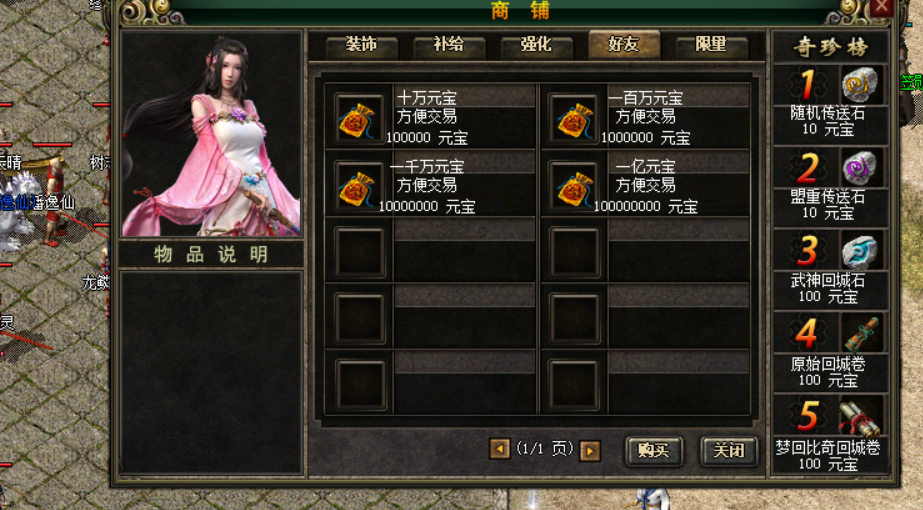 商铺卖的道具不过分,自然而然深受广大传奇玩家所喜爱,那么自然人气就会很高了。
